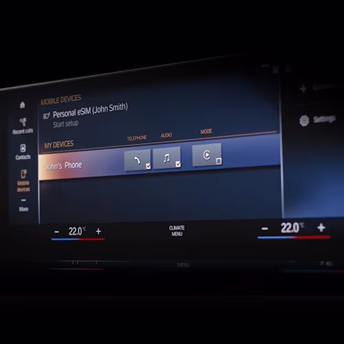 Turn your BMW into a driveable smartphone. Personal eSIM links your vehicle to your mobile network, optimizing your network and hotspot connections.